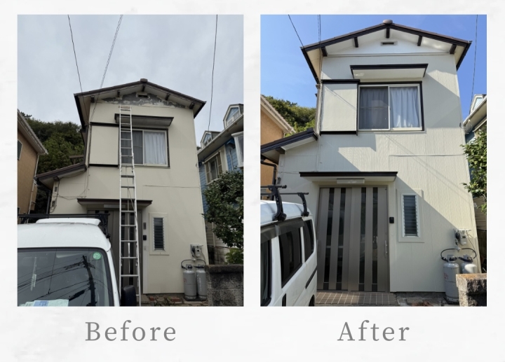シリコン樹脂塗料仕上げで3度塗りで施工させていただきました。ありがとうございます。
