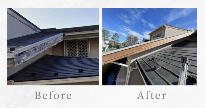 腐ってふかふかになっていた破風板を修理させていただきました。ありがとうございます。