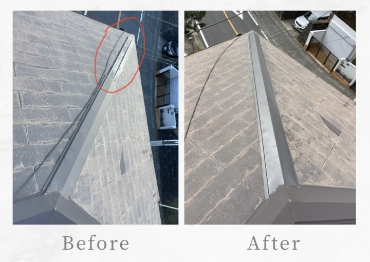 風で飛ばされた屋根の修理をさせていただきました。ありがとうございます。