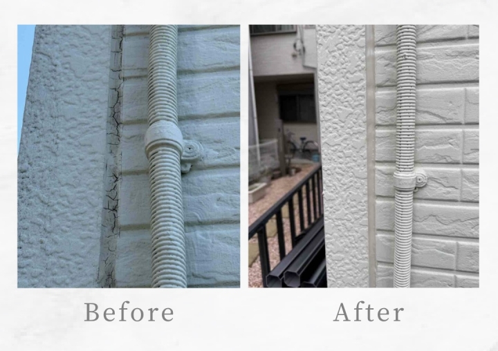 外壁の継ぎ目にあるコーキングの打ち替えをさせていただきました。ありがとうございます。