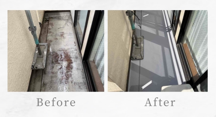 ベランダ床のFRPトップコートを塗り替えさせていただきました。ありがとうございます。