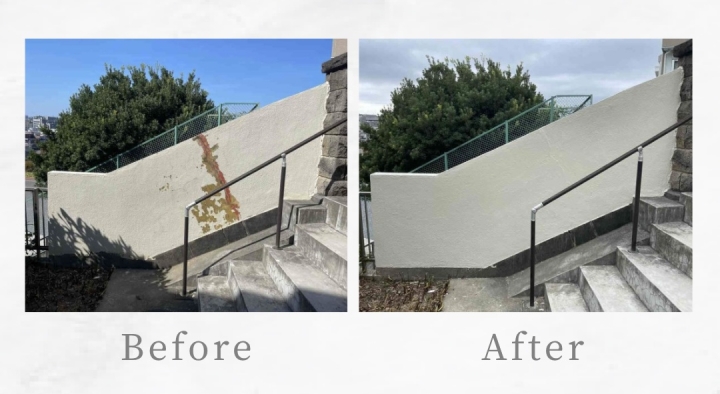 膨らんだり汚れてしまっていた擁壁を塗装させていただきました。ありがとうございます。
