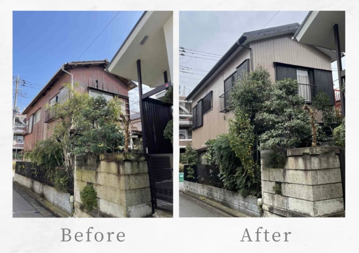 シリコン樹脂塗料仕上げで3度塗りで施工させていただきました。ありがとうございます。