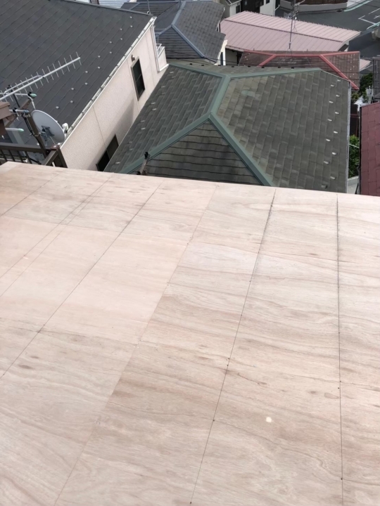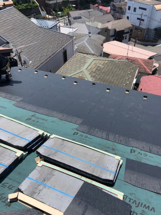古い屋根を剥がして下地からやり直し新しい屋根を葺き上げる工事です