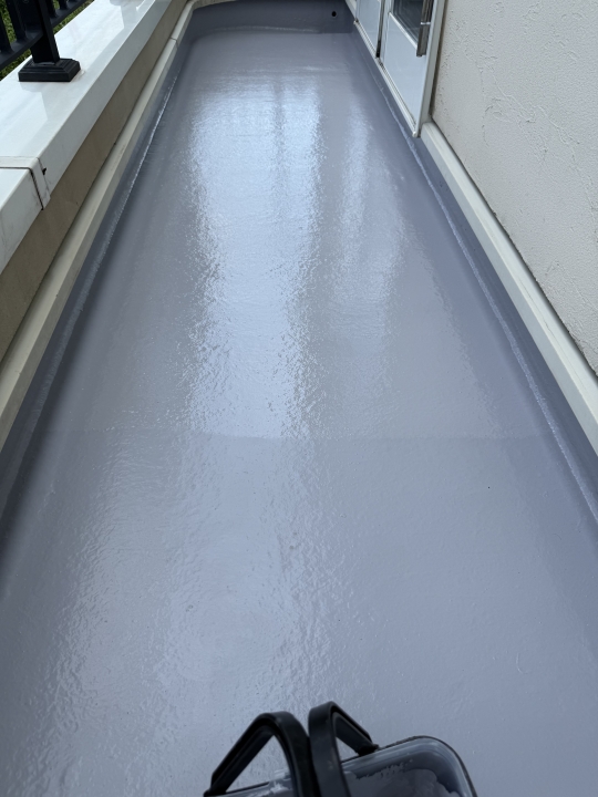 既存がFRP防水の場合、雨漏りがしていたり特別何か問題がない限りは既存のFRPの上に専用のプライマーを塗布してトップコートを塗布します。古い住宅や建築会社によってはコンクリートの床なのでその場合はウレタン防水やアクリルの簡易防水などを行います。